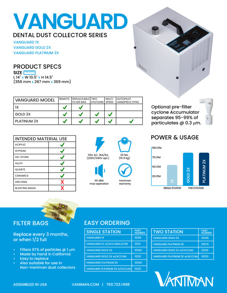 A case study for the Vaniman Vanguard Mobile 2.0 was also conducted by Dental Advisor in a real-world dental setting. This white paper contains the results of that study, as well as information about infection control and the unit itself, and has been distributed by prominent KOLs in the dental industry.